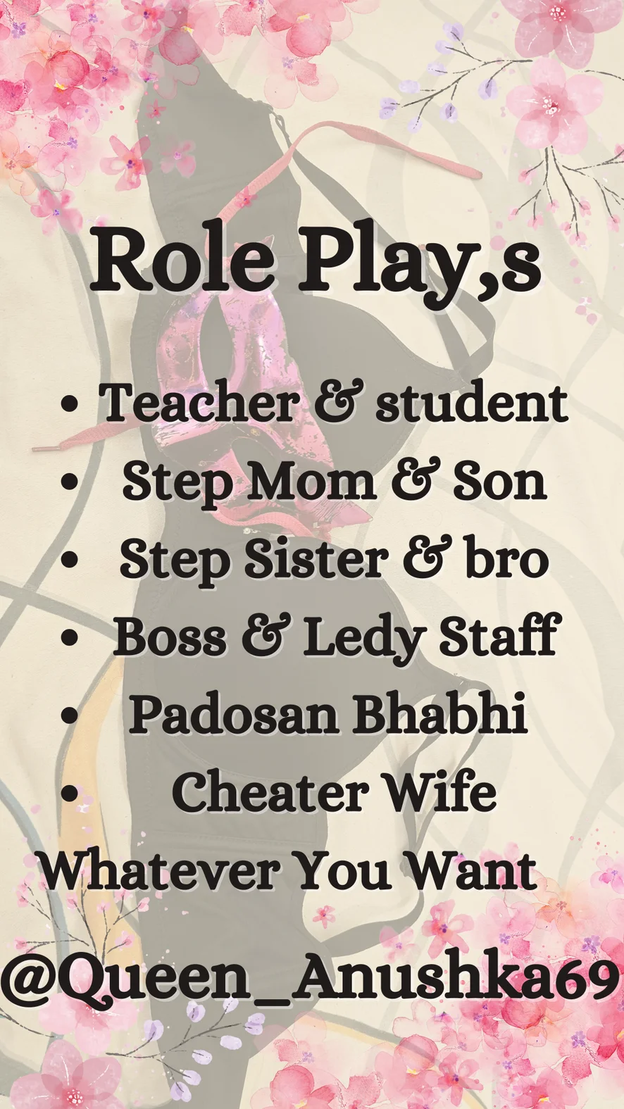 Мастурбація, Демонстрація геніталій, Камшот, Мінет, Брудні розмови, Мастурбація рукою, Поза вершниці, Глибоке горло, Догі-стайл, Жорсткий секс, Приниження, Поцілунки